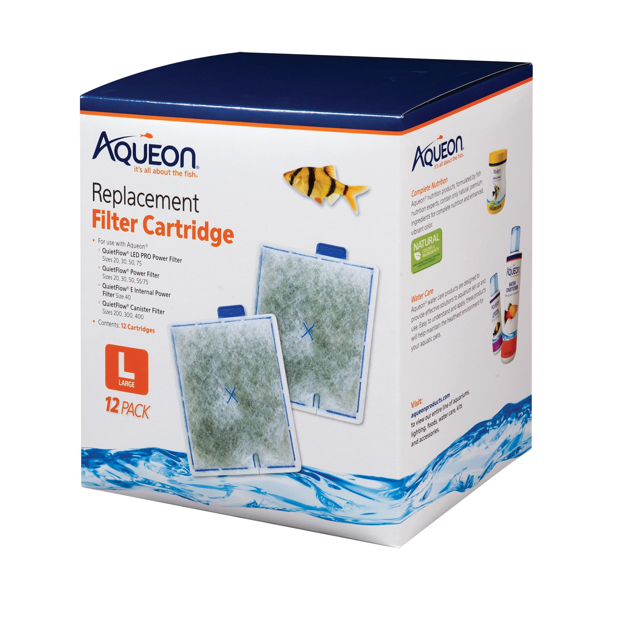 Aqueon Replacement Filter Cartridges are dual-sided, featuring dense-floss with over 25% more activated carbon than the leading brands. These patented cartridges were designed to ensure even distribution of activated carbon. To use, simply rinse under cold water and easily install using the “FRONT” orientation tab. Aqueon Replacement Cartridges are available in: X-Small, Small, Medium and Large. Replace cartridges every 4 weeks for optimal performance.