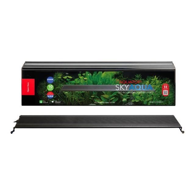 The Aquatop SkyAqua SAQ-1218 raises the bar for aquarium keepers by combining style and technology. Each specially engineered light mimics the shimmer of natural sunlight, produces minimal heat, offers a fanless design for pin drop silence, and provides general illumination for your aquatic organisms. The SkyAqua LED light can fit on virtually any tank from 12 to 18 inches for a quick, low profile installation.